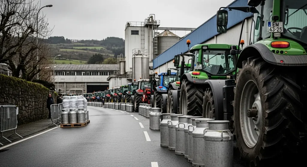 En Galicia, cooperativas y pequeñas empresas han sido históricamente el sostén del paisaje agroganadero. No es la primera vez que la provincia de Lugo presencia movilizaciones por cuestiones lácteas: a lo largo de la última década, las fluctuaciones de precios han provocado protestas en distintos puntos de la comunidad. Lo distintivo ahora es la conjunción de una caída del precio propuesta por la industria y un aumento de los costes que desborda la capacidad de respuesta de muchas explotaciones.