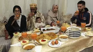 Celebración religiosa en minoría La estradense Sana Chefaoui, junto a su familia, ante la mesa lista para la cena. | BERNABÉ/ JAVIER LALÍN