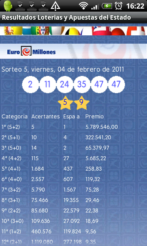 premio de los siguientes sorteos: ONCE, Bonoloto, Primitiva, Euromillones y Lotería Nacional. Nota: ABC.es no se